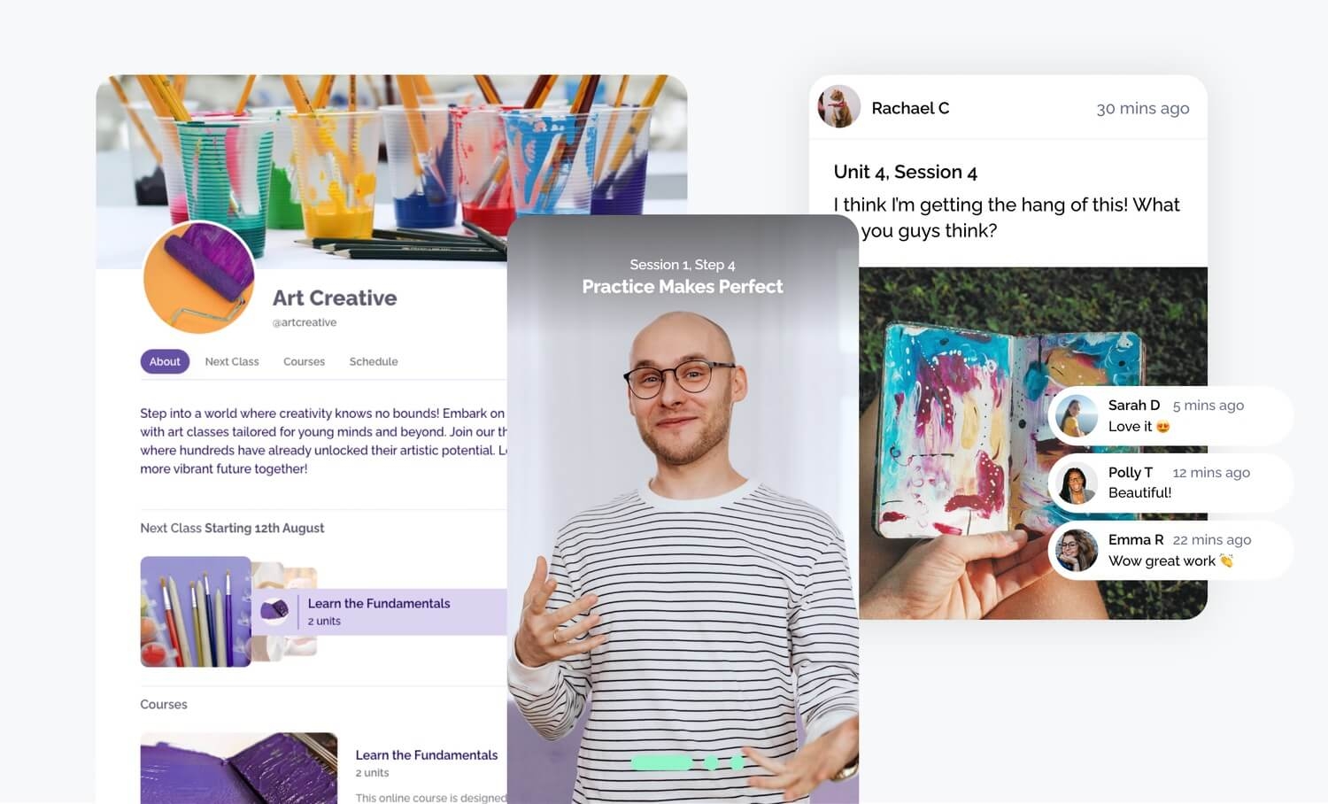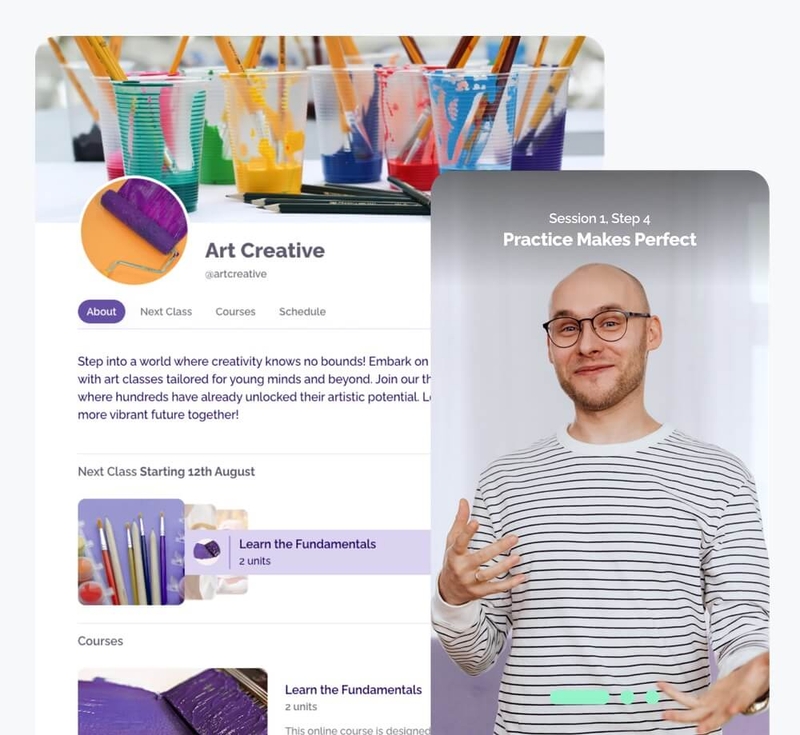 Generate private or public cohorts of learners for any of your created courses, giving them the power to collaborate, learn from each other and exchange feedback. Add additional teachers to your account to mentor and guide students through the material, allowing you to run more classes further than your personal capacity.