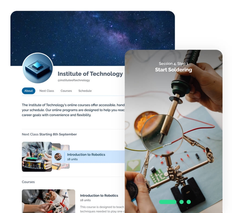 With Steppit, you can take student engagement to the next level with private classes, which will help you provide a better experience than any other online learning platform. You’ll give your students the chance to collaborate, learn from each other and exchange feedback just as they would in class.