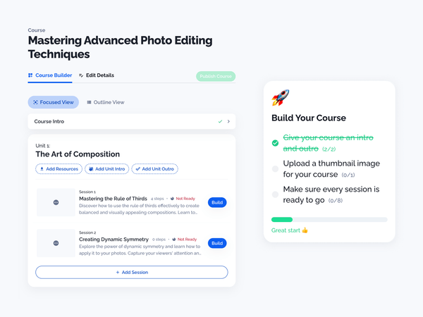 Your course builder Course Focus View Your course focus view shows you the unit you are focusing on…